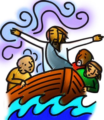 Jesus is trying to get away from the crowds for a bit of a rest. He was so tired he fell asleep in a boat in the middle of the lake. While Jesus was sleeping, the weather became stormy and the disciples were afraid. They woke Jesus and he calmed the storm. The wind and the waves were suddenly calm. When we are in a storm, there are a lot of unknown things going on. Jesus is with us all the time – even when we don’t know what is going to happen.